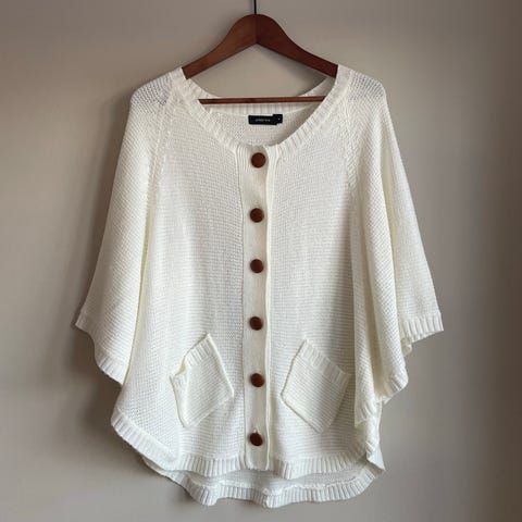 lindon, cardigan, strikkejakke, oversized, boho, stjerne, glitter, paljetter, hvit cardigan, kremfarget, sommerjakke, dameklær, xl, xxl, str 48, ny med lapp