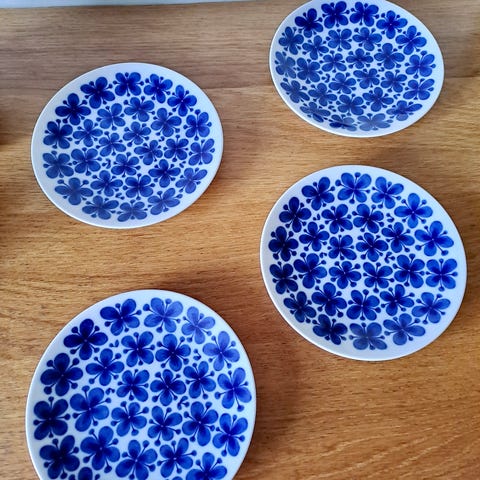 Ganske stor vintage krukke med lokk i dekoren Mon Amie fra Rörstrand. Fra den originale produksjonen. Den er i fin stand med noen bruksspor. Åpning til skje på siden av lokket. 11x12x16 cm inkl håndtakene.