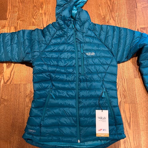 Jakken er pent brukt og fremstår som veldig fin, ingen synlige bruksmerker. Den er lett, varm og perfekt både til tur og hverdagsbruk.