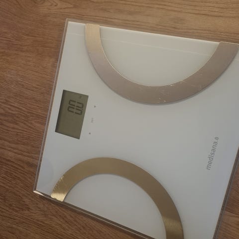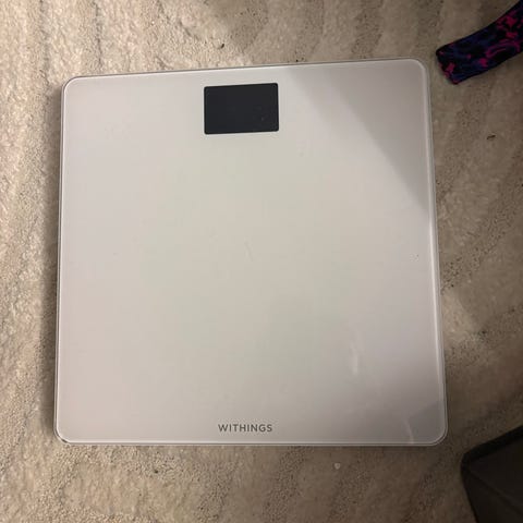 Garmin baderomsvekt med digitalt display i hvit utførelse. Vekten har belyst skjerm som viser vektmåling tydelig. Den måler bl.a. vekt, muskelmasse, benvekt, vannvekt mm.