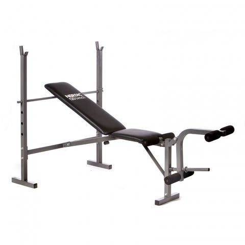 Adidas treningsbenk med integrert vektstativ i svart farge. Benken har justerbar ryggstøtte for ulike treningsposisjoner, samt curlpult for armtrening og polstrede ruller for ben- og bencurløvelser. Konstruksjonen er i metall med polstrede puter for sitte- og liggeflate. Egnet for styrketrening med manualer og vektstang hjemme. Vektstativet har faste holdere for vektstang. Passer til generell styrketrening av overkropp og ben i hjemmegym.