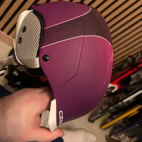 Cébé skihjelm i svart og hvit farge. Hjelmen har ørebeskyttere og justeringshjul bak for tilpasning av passform. Innvendig polstring og ventilasjonsåpninger gir komfort under bruk. Egnet til alpint og annen vintersport der det er behov for hodebeskyttelse.