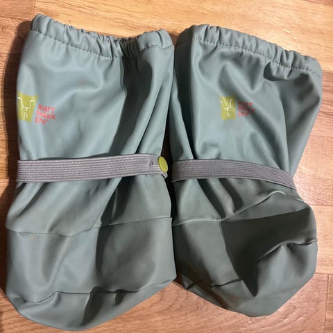 Selger et par Kattnakken regnfotposer. Brukt et fåtall ganger. Størrelse 1-2 år. Perfekt til barnehagebruk før barnet har lært seg å gå.