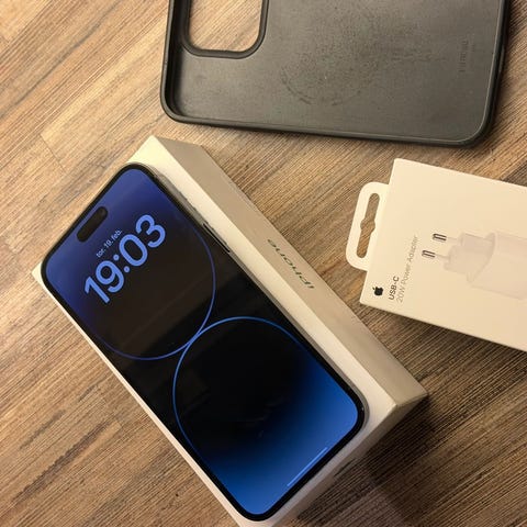 Selger en iPhone 14 Pro Max i grei stand. Telefonen fungerer helt som den skal og har normale bruksmerker etter vanlig bruk.