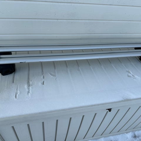 Takstativet består av to tverrstenger i aluminium med plastdeksler og integrert låsesystem i endene. Stengene monteres i bilens festepunkter og gir feste for ulike typer taklast, som takbokser, sykkelstativ eller annet utstyr som er kompatibelt med standard takstenger.