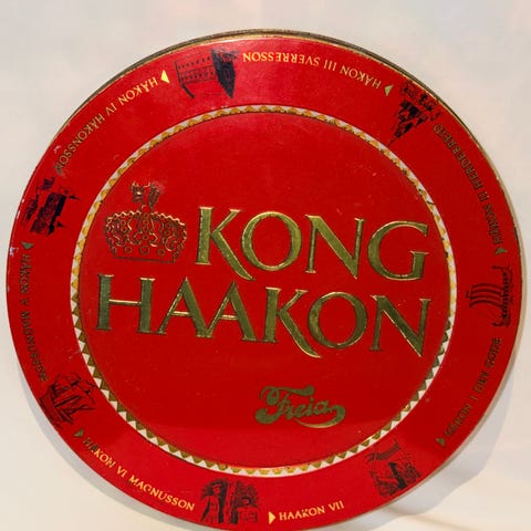Selger en flott metallboks / emballasje. Tilstand som ny. Høyde 32.7 cm. Diameter 10.6 cm.