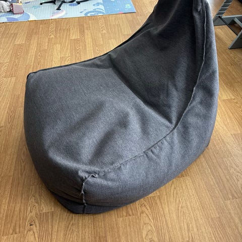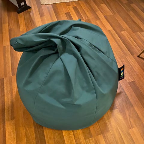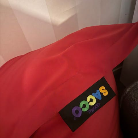 Jegerup saccosekk, kan brukes ute og inne. Vannavstøtrnde stoff. Brukt og oppbevart inne