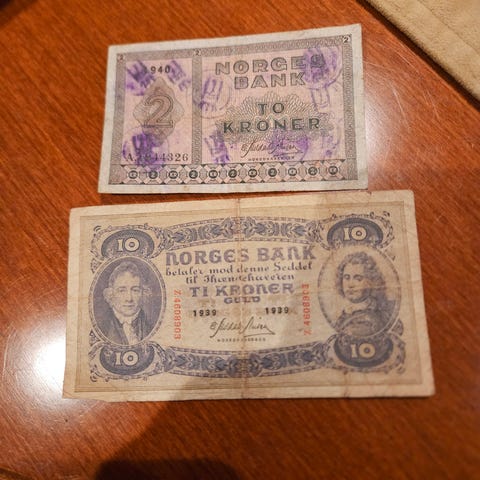 Norges Bank 4 stk 10 kroner seddel fra 1939 til 1942