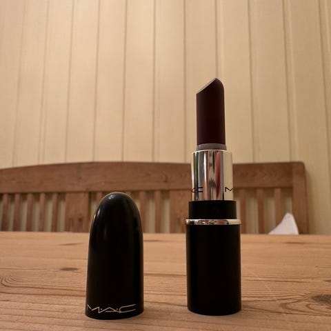 MAC Rebel leppestift i satin-finish. Fargen er en mørk bær-/plommefarge. Klassisk MAC-hylse i svart med sølvfarget detalj. Passer til leppemakeup og kan brukes alene eller sammen med lipliner og gloss etter ønske.