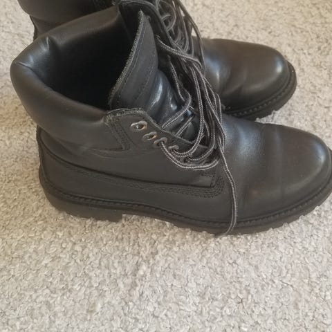 Timberland støvler i størrelse 39 for dame. Modellen er i svart semsket skinn med snøring foran og kraftig gummisåle med grovt mønster. Støvlene har polstret ankelparti for ekstra komfort. Egner seg til hverdagsbruk og utendørsaktiviteter i kjøligere vær.
