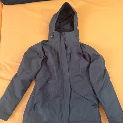 The North Face jakke for dame i størrelse M. Jakken er hvit og laget i polyester. Den har hel glidelås i front, høy krage og flere glidelåslommer, blant annet brystlomme og sidelommer. Innsiden har mønstret fôr. Egnet som ytterjakke til hverdagsbruk og lettere friluftsaktiviteter
