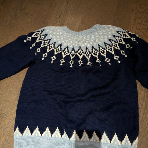 Marie Philippe genser og lue i ull for dame i størrelse XS, men vil si den passer mer en s. Genseren er lilla med mønster i kontrastfarge og har rund hals og lange ermer. Strikket i 34% ullmateriale som gir et mykt og varmt plagg egnet til bruk i hverdagen eller på kjølige dager. Det også med en lue i samme mønster og materiale.☺️ pris kan diskuteres