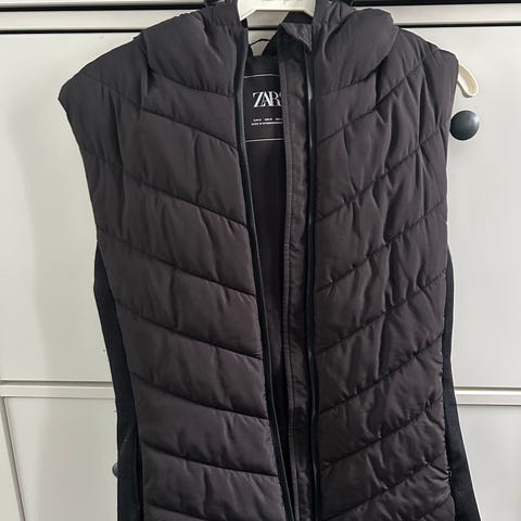 Stilig sort boblevest fra Zara. Stretch i sidene, og glidelåslommer. Ikke synlig brukt.