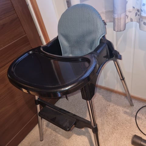 Kinderkraft høy barnestol i svart. Stolen har avtagbart matbrett, fotstøtte og metallben. Egnet som spise- og sitteplass for små barn ved bordet. Setet har ryggstøtte og enkel utforming som gjør den praktisk i bruk hjemme eller på hytta.