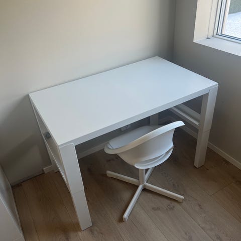 Medfølger en flott stol som står i stil med bordet og gir et helhetlig og moderne uttrykk. Stolen kan snurres, noe som gjør den ekstra praktisk og komfortabel i bruk – enten du sminker deg, jobber eller studerer.
