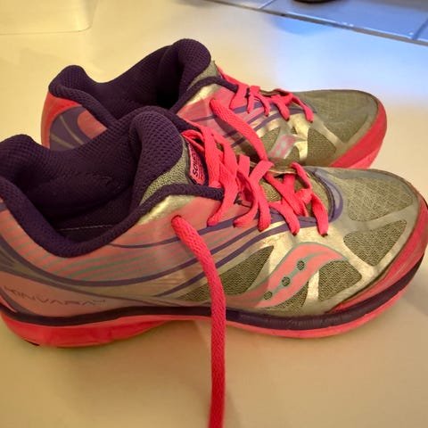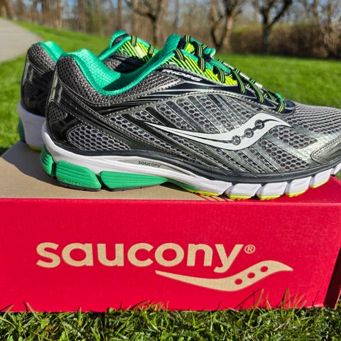 Saucony Triumph løpesko i størrelse 39. Skoene er i rødfarge med hvit mellomsåle og yttersåle med røde og hvite felter. Overdelen er i pustende mesh med syntetiske forsterkninger. Modellen har EVERUN-innleggssåle for demping. Egnet til løping og annen trening på asfalt og lignende underlag.