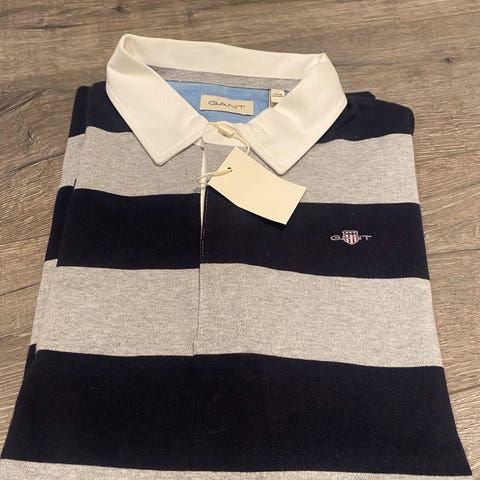 Gant Barstripe Heavy Rugger skjorte 158/164. Langermet skjorte med brede horisontale striper i lys rosa og hvit, samt kontrastkrage i lyseblått. Skjorten har krage, knappestolpe i halsen og brodert emblem på brystet. Laget i bomull for et mykt og behagelig materiale. Passer til hverdagsbruk og fritid.