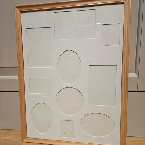 Selger en veldig elegant treramme med glass og et slags utradisjonelt Jesus-motiv/print.