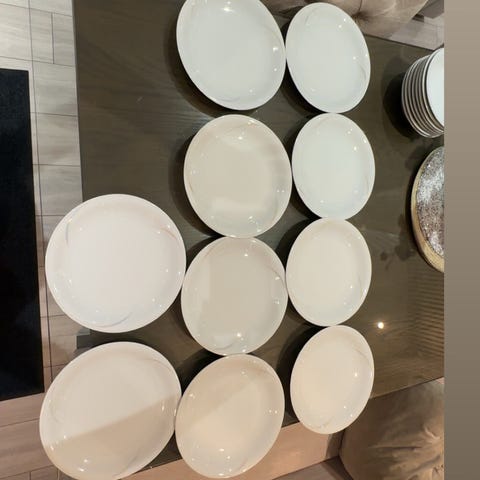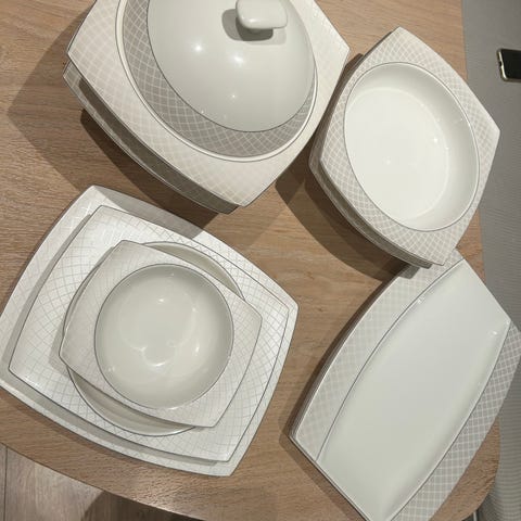 &Tradition Clair de Lune servise i hvit porselen. Serien består av runde tallerkener og boller i ulike størrelser, egnet til servering av forretter, hovedretter, desserter eller tilbehør. Dekoren er håndmalt, og delene har en enkel, lys overflate som passer inn i de fleste borddekkinger. Serviset kan brukes både til hverdags og til mer formelle anledninger.