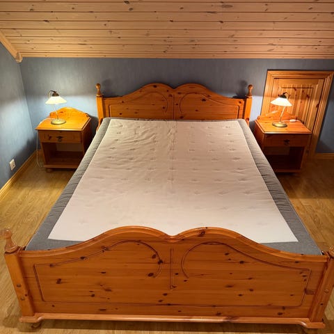 Dobbeltseng med nattbord. Pent brukt/i god stand.