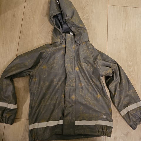Reflex jakke for barn i størrelse 122 cm (ca. 7 år). Jakken er grønn og laget med elastan i materialet for økt bevegelighet. Modellen er unisex og passer både gutter og jenter.
