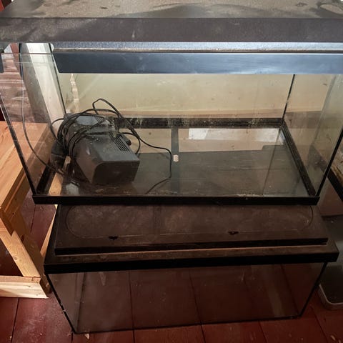 Akvariet ble kjøpt på finn som akvariet for rekker og babi-fisker, men pga flytting, har vi ikke nok plass for det.