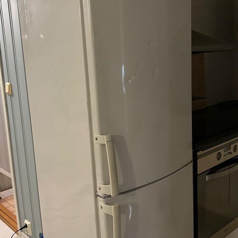 Whirlpool kombiskap kjøleskap og fryser i hvit utførelse. Kombiskapet har kjøledel øverst med flere hyller og en grønnsaksskuff, samt en dørhylle for oppbevaring av flasker og mindre varer (de siste to er borte/ødelagt). Nederst er det frysedel med egen dør. 3 skuffer i frysedel.