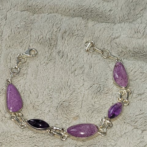 925 sølv armbånd med ekte rosa opal, granater, peridot og citrin. Lengde reguleres 17,5-20 cm.