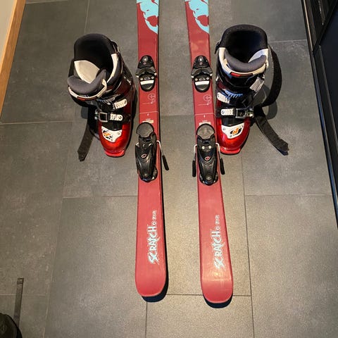 Sett med ski og støvler er egnet for barn som skal bruke utstyr i alpinbakke.