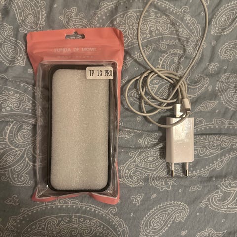 Iphone 13 sett med deksel, ørepropper, ladekabel og lader