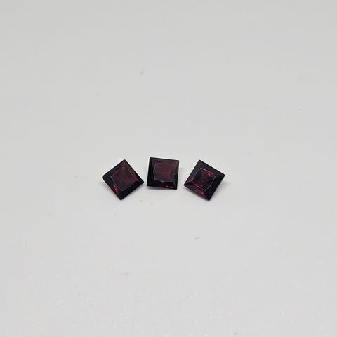 Selger tre nydelige, naturlige røde granater i en klassisk rund slip. Steinene måler 4 mm i diameter og har en dyp, elegant rødfarge med flott glans. Denne størrelsen er perfekt for diskré øredobber (studs), som sidestener i en ring, eller til et delikat smykke.
