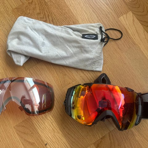 Skibrillene/slalombrillene fremstår som pent brukt, uten noen form for riper eller anmerkninger på linsen. De er helt fantastiske mot sterkt sollys og god sikt. Det følger også med et ekstra sett med linse i gult, som egner seg godt for overskyet eller flatt lys.
