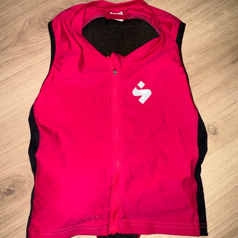 Sweet Protection Back Protector Vest ryggskinnevest i størrelse S. Vesten har integrert ryggskinne med SAS-TEC SCL-teknologi og er CE-godkjent nivå 1. Passer til kroppslengde ca. 140–160 cm og midjemål opptil ca. 32–36 tommer (maks). Vekten er oppgitt til 350 g. Modellen har glidelås i front, elastiske partier i siden og er hovedsakelig rosa med sorte paneler. Egnet som ryggbeskyttelse ved aktiviteter som ski, snowboard eller sykling der ekstra ryggbeskyttelse er ønsket.