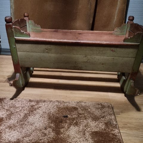 Unik gammel slagbenk ca1850 fra sæter på Lemonsjøen i Vågå. Fremstår antikk brukspreget i orginal farge med flott antikk patina. Benken er hel og i god stand. Den er tung og massiv antagelig i furu.Mål :180 lang x108 høy x 47 cm bred / utslått 75:cm.bred.