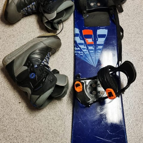 Snowboard med bindinger og støvler