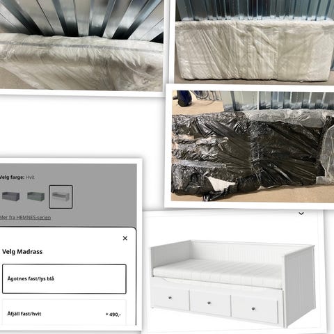 Selger to stk IKEA Tuddal overmadrass i størrelse 80x200 cm, samt madrassbeskyttelse (IKEA Luddross).