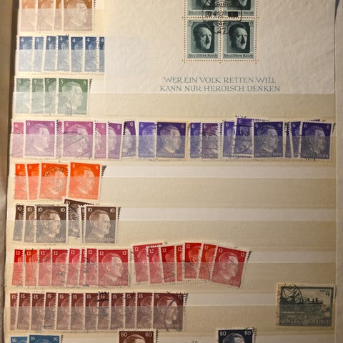 Gammel Innstikkbok 16 sider med frimerker fra Deutsches Reich. Se bilder som viser alle merkene. Hentes på Jessheim eller sendes mot forhåndsbetaling pluss porto. Porto kr 80,- som sporbar postpakke. Se også mine andre annonser.