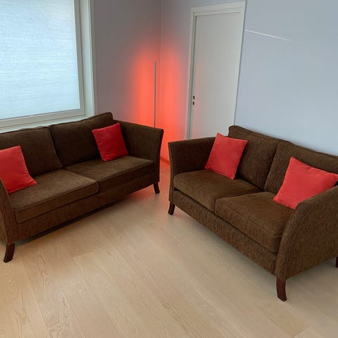3 seter sofa fra danske produsenten Engell . Sitte og ryggputene kan vendes . Avtagbare/ vaskbare trekk på samtlige puter. Mørk grå trekk , middels fast / myk sittekomfort . Stoffet er meget slitesterkt. Normal bruksslitasje