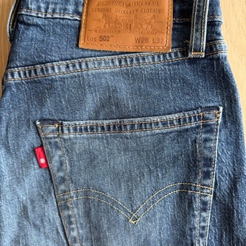 Levi's Premium jeans for herre i blå denim. Buksen er i størrelse L med livvidde W32. Klassisk 5-lommers modell med glidelås og knapp i front, beltehemper og baklommer. Produsert i denim-materiale som gir et tidløst uttrykk og passer til hverdagsbruk.