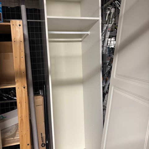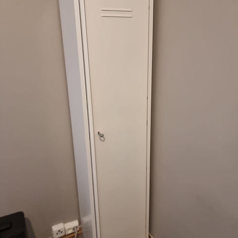 Skapet er perfekt å ha på et vaskerom med støvesuger i eller andre vaskeprodukter.