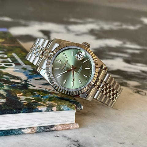 Dette er en nylig ferdigstilt, spesialbygd klokke, satt sammen av meg med fokus på presisjon. Klokken er bygget med høykvalitets tredjeparts komponenter og et originalt Seiko-urverk for å sikre best mulig finish og holdbarhet. Klokken er inspirert av det klassiske Datejust/Oyster Perpetual-designet – en stil som er ekstremt ettertraktet i 2026 – men skiller seg ut med en fantastisk sunburst-skive og en eksklusiv detalj på baksiden.
