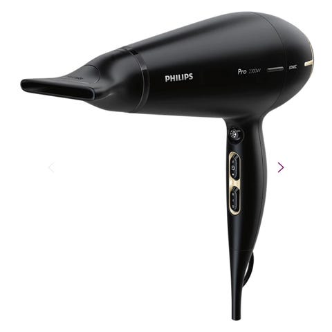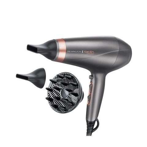 Remington ProLuxe hårføner i svart farge. Modellen leveres med to vanlige munnstykker og en diffuser.
