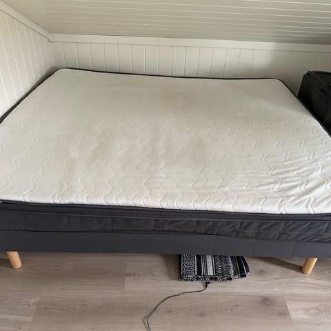 To senger med overmadrass selges billig. Må hentes innen fredag kl 17.00
