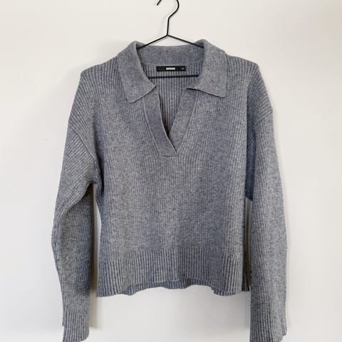 Kasjmirgenser for dame i størrelse 40. Liten i str, så passer bedre en str 36/38. Genseren er grå og laget av 100 % kasjmir. Modellen har krage og v-utringning, lange ermer og rett fasong.