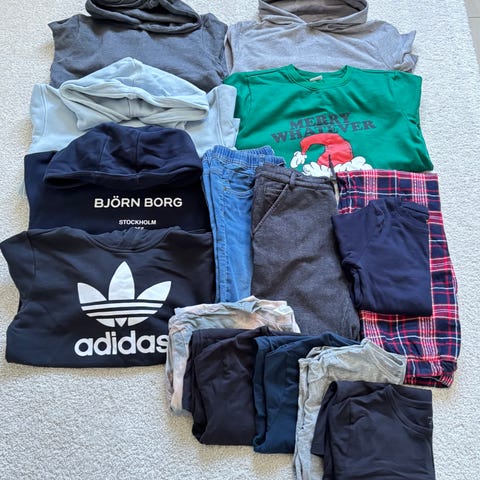 Selger pent brukt barneklær til gutter mellom 8,9, 10 år. Klærne er pent brukt og er brukt i dyre fri hjem. Skoene er i størrelse 37. 38 Selges samlet for 499kr og må hentes i Kvarstein, Vennesla