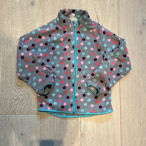 Fin vindfleece i god stand fra Polarn o Pyret, str 98. Pent brukt av ett barn. Normale bruksmerker, ingen slitasje.