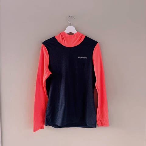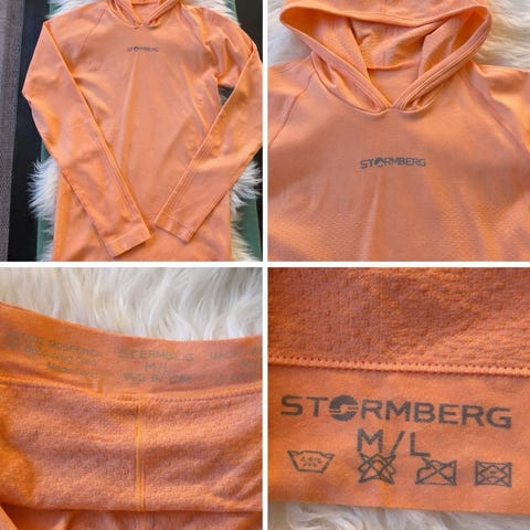 Stormberg hettegenser treningsoverdel for dame i størrelse M. Genseren er rosa og har hette med kryssdetalj i halsåpningen. Den er laget i et lett og elastisk materiale som egner seg til ulike typer aktivitet og hverdagsbruk. Ermene er lange, og plagget har en kroppsnær passform som gir god bevegelsesfrihet. Passer som mellomlag eller alene ved trening og fritid.