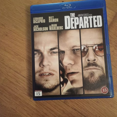 The Departed Blu-ray film. Utgave på Blu-ray med spilletid på ca. 151 minutter. Omslaget viser informasjon på flere språk, blant annet norsk og dansk. Filmen er aldersmerket 15 år. Egnet for avspilling på Blu-ray-spillere som støtter regionen angitt på omslaget.