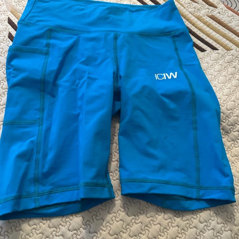 ICANIWILL treningsshorts for dame i størrelse S. Shortsen høyt liv med bred, ribbestrikket linning. Modellen er tilpasset trening og fitness, og er laget i et elastisk materiale som sitter tett på kroppen. Kort lengde over kneet og liten ICANIWILL-logo på låret. Egnet til bruk på treningssenter, hjemmetrening og annen fitnessrelatert aktivitet.