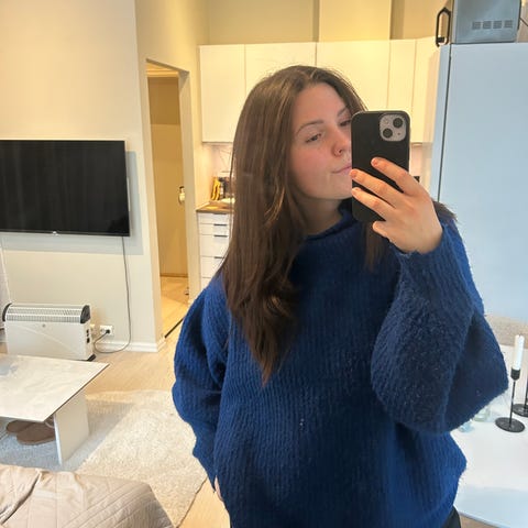 Fin blå strikkegenser fra sisters point. Passer XS, evt en liten S. Nesten ikke brukt og fortsatt kjempe fin🤍